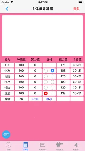 2、使用体验良好。界面简洁可爱、操作流畅直观,操作步骤简单,先下载安装打开对战资料,选计算内容、搜索宝可梦,输入数值就能算出等级及参数。