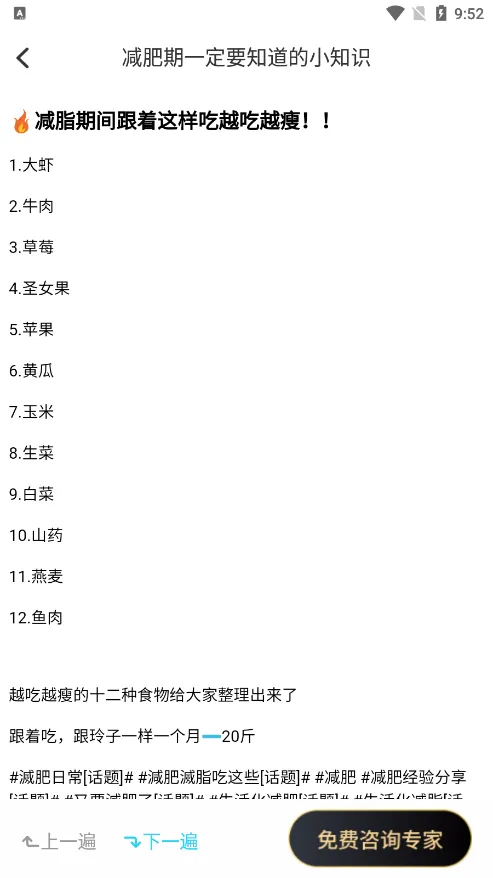 3、丰富资源助力:拥有丰富多样的资源库,包含各类课程、食谱,以及大量健康知识和饮食建议,能满足用户多样化需求,帮助用户科学减肥。
