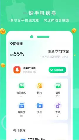 它的特色功能很多,像智能垃圾清理,能精准识别无用数据并一键清除;一键手机加速,能智能关闭后台耗电进程,让手机瞬间流畅;微信深度专清,能精准清理微信内存,还不删重要资料;广告软件扫描,可自动检测清理恶意广告插件。预装软件管理也支持卸载部分无用预装应用。有了它,手机空间更充足,运行更轻快,广告少了,使用环境干净清爽,能全方位满足你优化手机使用体验的需求,放心用吧!