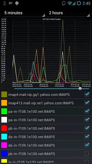 3. 触摸应用可查看连接时间线,选择菜单项能查看所有应用整体时间线。