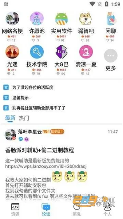 1. 落叶社区资源极为丰富,涵盖软件和游戏等各类资源,均由用户自发提供,保证了资源可靠性,社区生态活跃。
