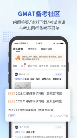 1、内置30万用户的备考社区,提供换库预警、鸡精、高频题更新、资料共享等功能,支持多语言翻译与跨国交流。