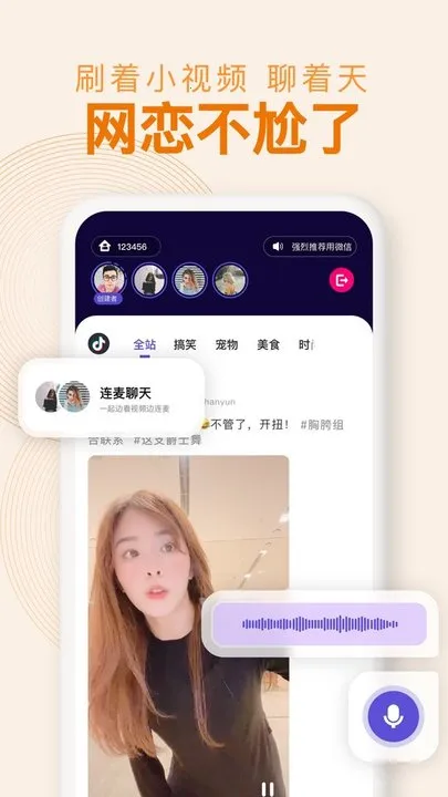 2. 共屏操作便捷,针对各种内容可快速在线共屏,让用户体验更简单。支持B站、抖音、腾讯、爱奇艺等主流视频网站,观看时还能语音聊天。