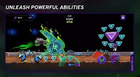 2、创新玩法带来前所未有的特技驾驶体验和极限挑战,能完成惊险空中翻滚等炫酷特技。