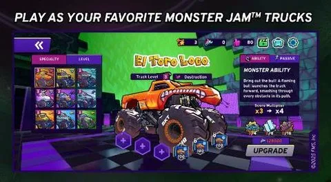 4、能对怪物卡车进行升级定制,打造专属战车,还可参与每日挑战和活动获丰厚奖励。