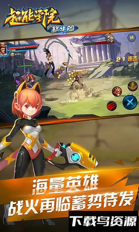 超能学院格斗篇安卓版是经典动作手游,能释放华丽技能,有多种装备增强战力。单手操作,英雄众多,攻击键自动追踪,操作简洁特效华丽。含主线、日常、成就任务,通过虚拟摇杆控制角色,用金币钻石强化,快来体验。