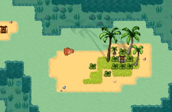 3、前行途中发现宝箱被茂密草丛包围,此时需先制作基础工具才能清除障碍、接近目标。