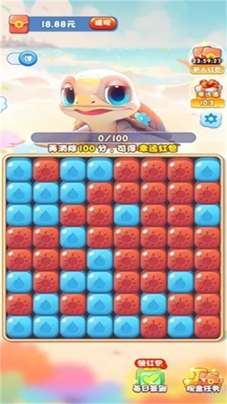 疯狂大海龟是一款休闲消除赚红包游戏,有经典玩法与丰富关卡。操作简单易上手,滑动手指消除方块。玩游戏能领红包赚零花钱,还有多种难度关卡,带来愉悦体验,现修复已知bug 。