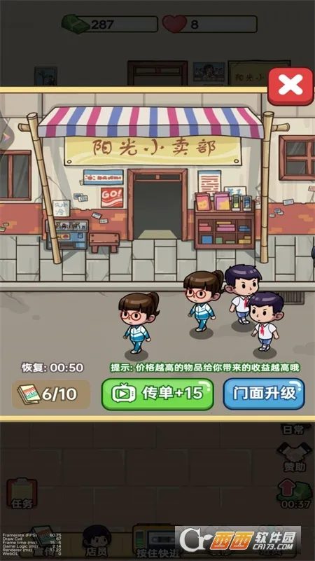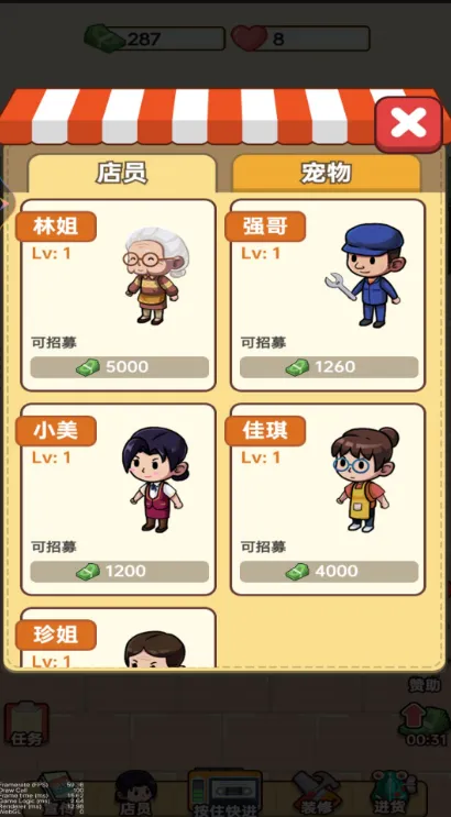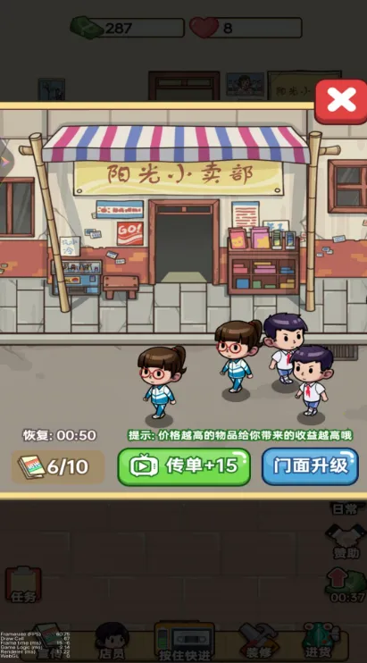 想知道新开小卖部怎么经营吗?快来试试这款游戏吧!在游戏里,你将拥有自己的小卖部,从白手起家开始,一步步把它做大做强。你可以通过顾客挑战打分获取各种材料和货币,还能招募员工壮大团队。这里有店员匹配、设备升级、商品上架等丰富玩法,能为你提供提升人才和设备的材料。游戏特色满满,有多种多样的活动经营任务等你冒险,拓展店面吸引更多顾客,赚取资金扩大规模。销售符合客户需求的商品,丰富商品种类招揽客户,招聘店员提供优质服务。而且能锻炼经营策略思维,体验创业乐趣。亮点也不少,战略性招聘人才增加收入,丰富活动任务自由解锁升级,灵活操作及时完成经营。现在就开始,感受经营小卖部的热闹与乐趣,积累财富,实现你的经营梦想!