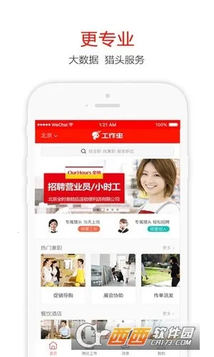 2. 其工作范围全面,每天更新高质量职位,能随时挑选喜欢的岗位,申请工作简便,还支持与老板在线沟通。