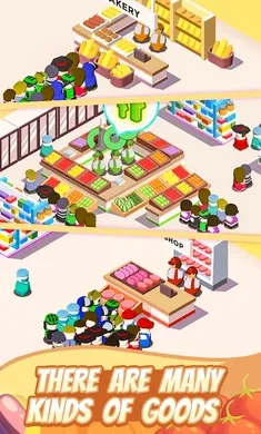 3. 画面精美,卡通造型软萌治愈,自定义布局可打造专属超市。离线也能赚取金币,不断扩张店铺规模。