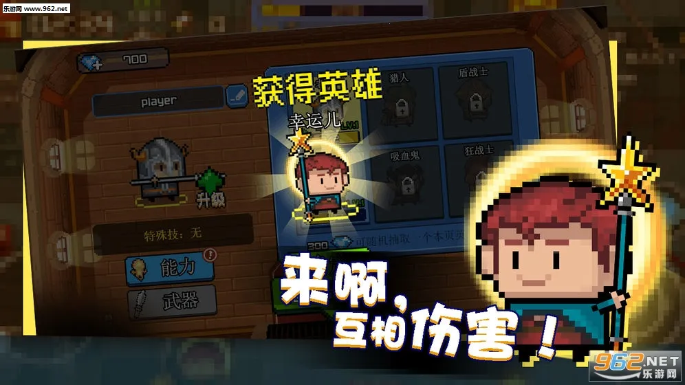 扎心英雄最新手机版是一款像素风魔性乱斗对战IO游戏。背景设定在人与怪物共存时代,玩家要抵御怪物侵袭。战斗中用长枪击杀目标,提升等级可获新武器,还有多种场景、人物及皮肤,考验操控力与策略。