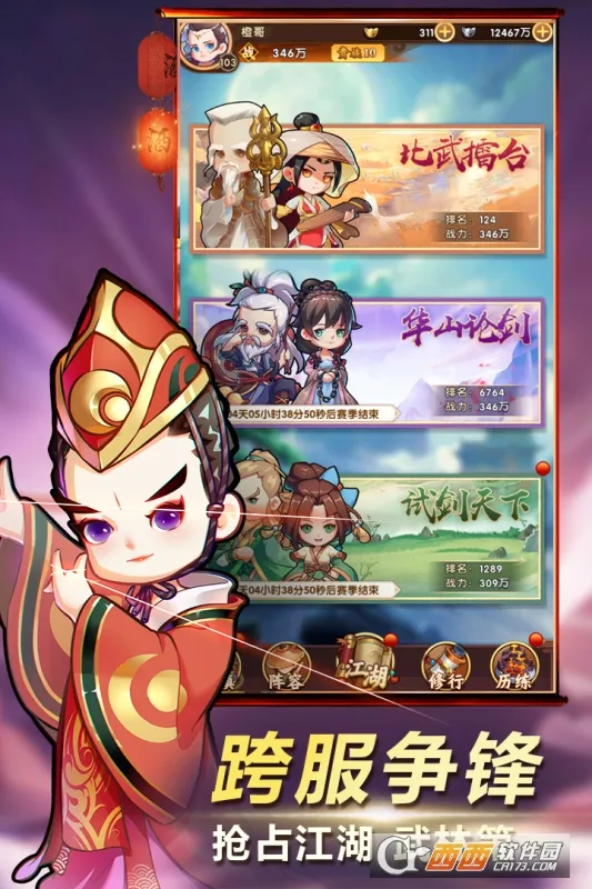 4. **养成有趣**:每个侠客都有战斗技能,技能会随养成蜕变。收集武功秘籍合理搭配,招募弟子体验养成玩法,注重布阵策略,引入组队和社交玩法。