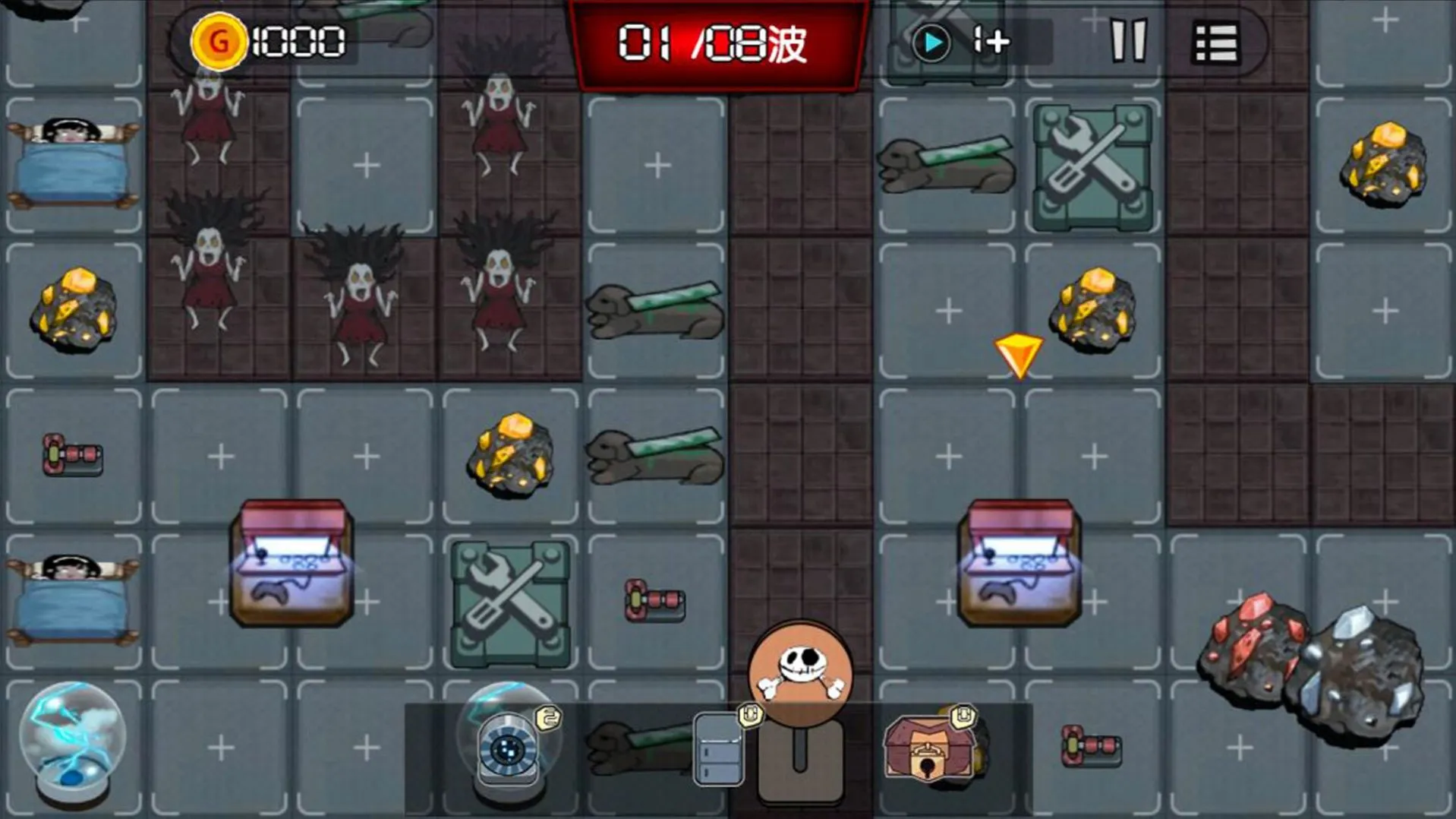 2、随着时间推进,鬼怪种类和能力进化,游戏难度提升,需不断调整防御策略。还能探索房间找隐藏道具线索,升级防御设施增强能力。