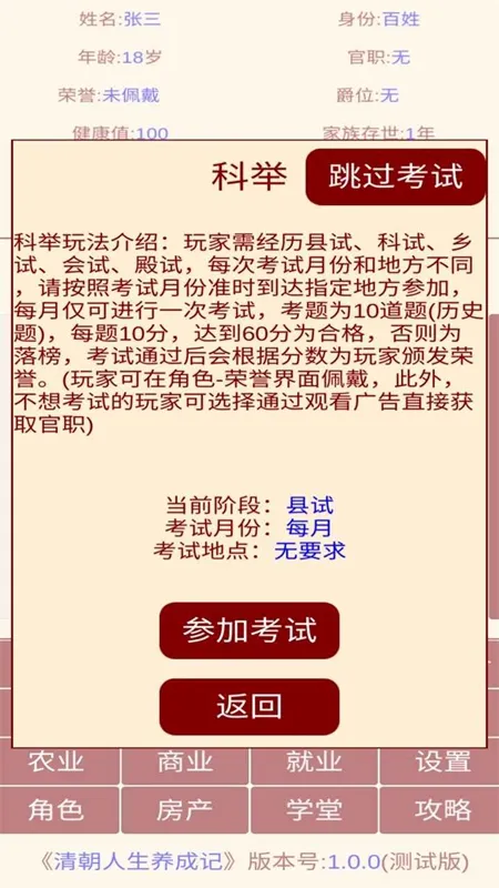 3、玩法多样,可自由选择身份职业,通过合理分配属性点影响人生发展,有多种社交活动,还能参与战争等,充满策略与冒险。
