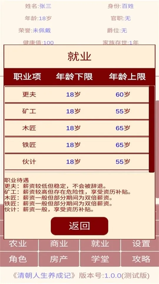 2、分类清晰,支持按类型、热度搜索,能精准定位。玩家可自由挑选角色,如小贩、士兵、官员等,开启不同人生体验。