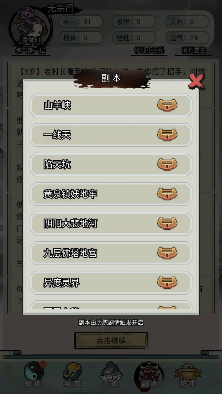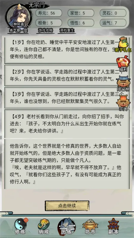 3、模拟真实修仙生活,海量随机事件,还原原汁原味的修仙世界。