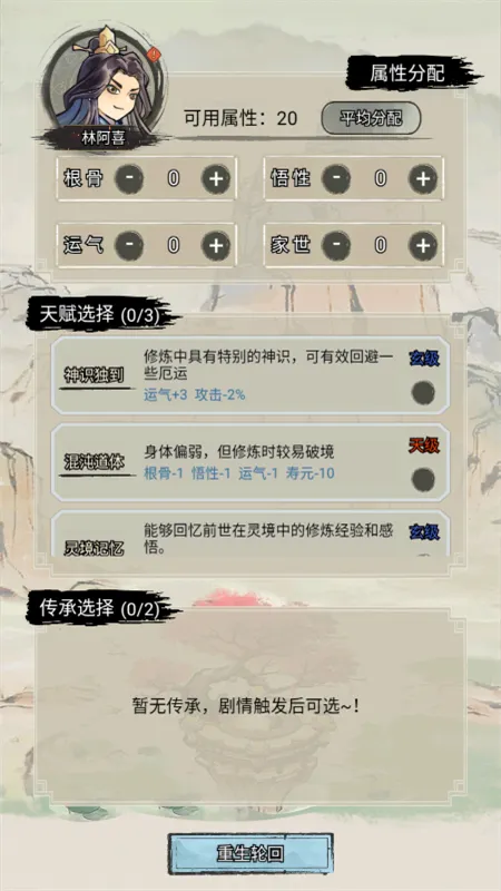 2、开局可自选天赋与属性,人人开局不同,天赋还可能触发隐藏剧情。