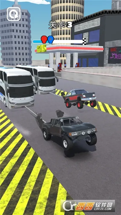 2、玩法简单易上手,玩家驾驶车辆拉动大车前进,需注意力度避免绳子断裂,道具也很关键,能助力通关。