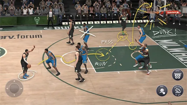 3. 其物理引擎模拟真实篮球运动轨迹与碰撞反馈,传球轨迹与投篮弧线符合现实物理规律,增强了比赛真实性与策略深度。