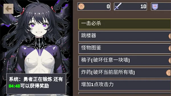 2、独特难度设置:添加金手指系统可降低难度,花费金币解锁提升属性等功能;同时部分楼梯跳层,增加挑战。