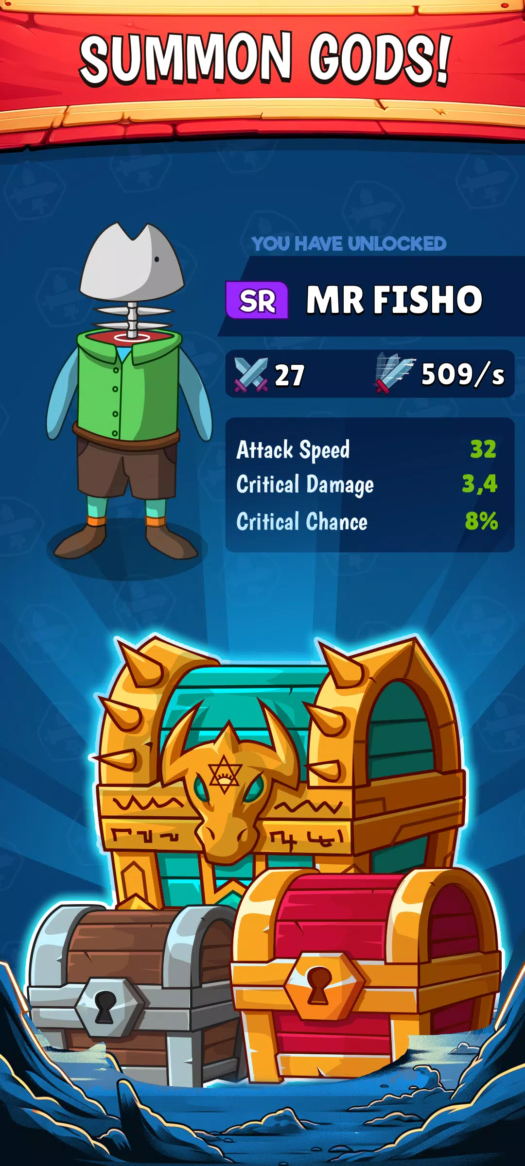 2、有超过50位英雄及其进化路线,可开启宝箱召唤不同等级英雄,还有机会获得传奇英雄。