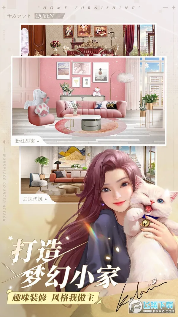 1、游戏玩法丰富,集职场模拟、恋爱互动、换装等多种元素于一身,为玩家提供极致的大女主体验,首创现代都市职场沉浸玩法。