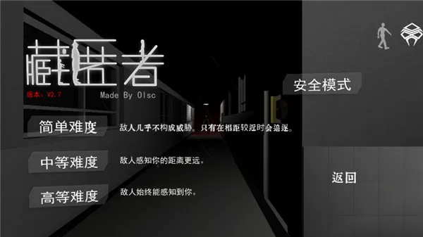 藏匿者是一款由B站up主Olsc独自开发的悬疑解谜逃脱游戏。玩家在诡异大楼中找线索、避危险,通过解谜题、躲怪物来逃脱。游戏有多种结局,操作独特,场景逼真,氛围惊悚,快来体验紧张刺激的解谜之旅!
