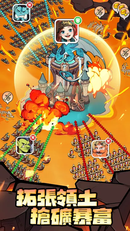 4、要面对熔岩巨兽的挑战,需召集盟友组队战斗,利用一切策划战术,在争夺宝藏和资源战斗中成为富豪。