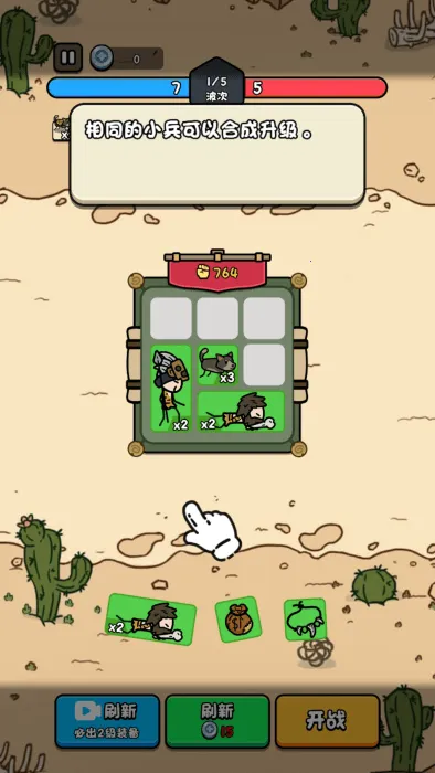 把相同的士兵可以进行合成。
