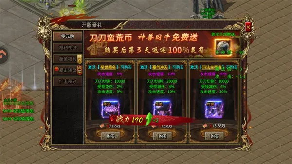 3. 开放诸多福利,满级赞助特权、高爆率自动回收等助力玩家成就最强。