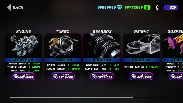 1. 在比赛中不断收集各种赏金,利用非凡的改装系统提高车辆属性,开启极限竞速之旅。
