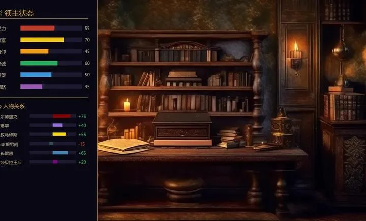设有六维属性系统,武力、智谋、魅力、统御、信仰、财富,属性决定可用选项,没有最优解,全看玩家自身选择。