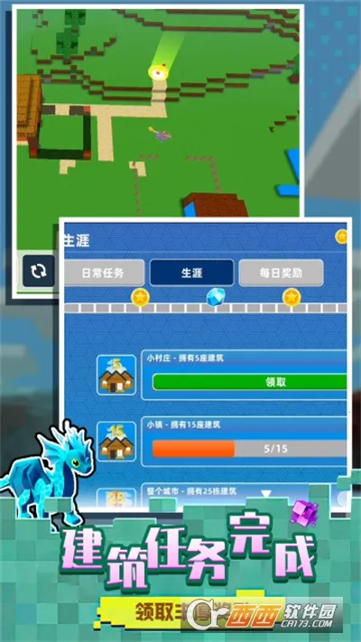 1、可以自由搭建小屋,拥有现成的游乐园,还能按照游戏中的游乐园打造村庄或者家园。