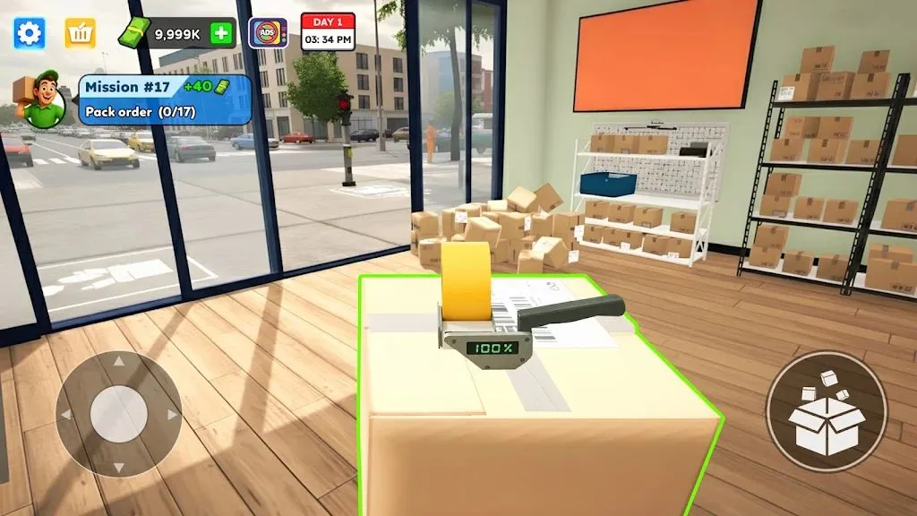 2、可分类整理各种商品物品,选合适包装尺寸,添加保护性气泡膜,扫描商品并快递送达,还能升级店铺工具解锁新货架,加快工作效率。