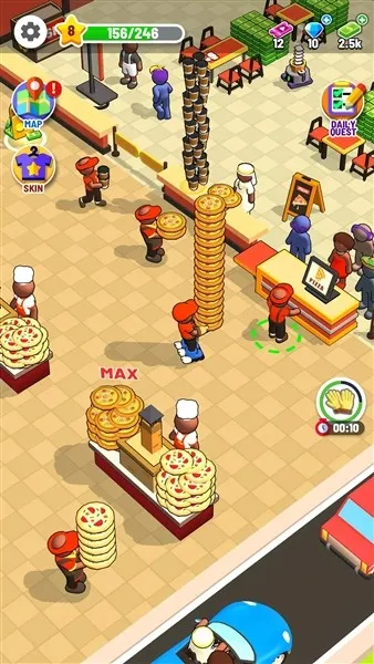 3、社交互动成就共享,共建披萨王国:支持绑定社交账号,一键分享经营成就店铺规模爆款披萨等高光时刻,邀请好友同台竞技互相助力还能与好友联动经营,交流经营技巧,携手打造属于彼此的顶流披萨商业帝国,增添社交趣味性。