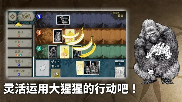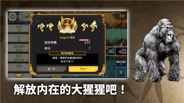 3. 猩猩智能进化机制有趣,猩猩通过模仿玩家不断进化,智力与思维能力提升,产生协作行为,关卡推进时更多种类猩猩加入追击阵营。