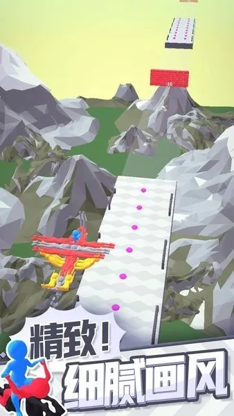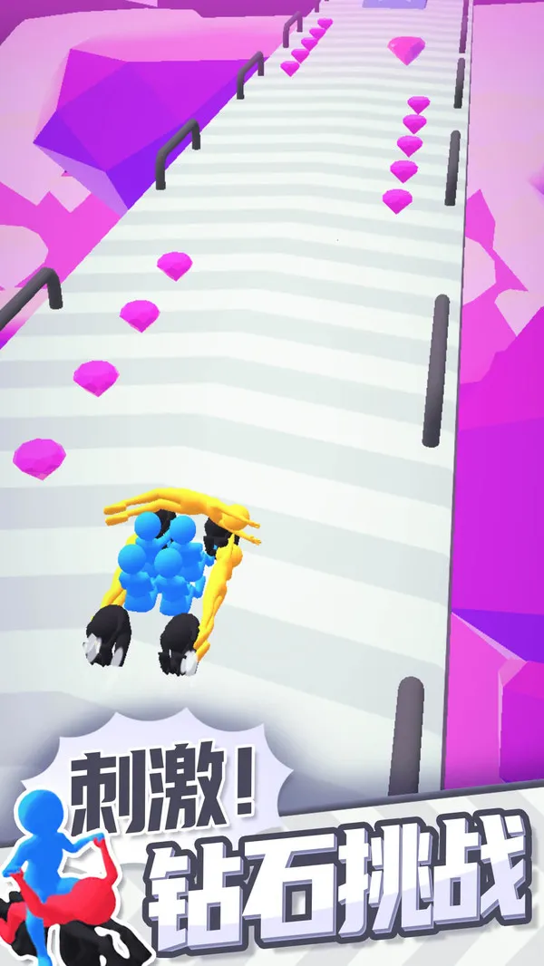 1、游戏玩法魔性,通过收集火柴人合成千奇百怪的交通工具,开启搞怪跑酷之旅,一边收集钻石一边前进。