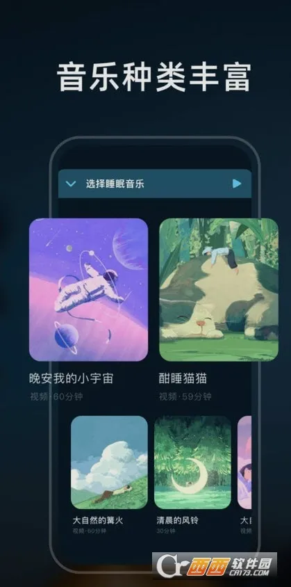 1、独家音乐,由知名疗愈音乐制作人打造白噪音、轻音乐、脑波音乐等原创助眠音乐,给予暖心睡前陪伴。