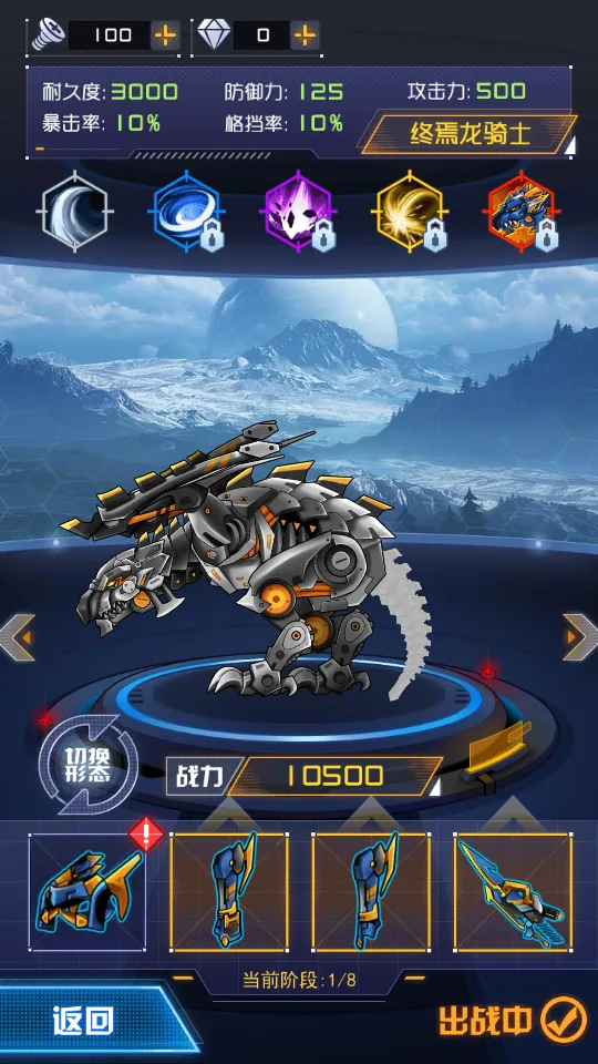 1、海量机甲随心选,每种都有独特技能和属性,玩家可依喜好挑选并提升其能力。