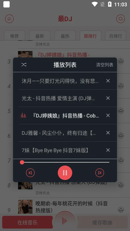 1、资源超丰富,涵盖中文dj舞曲、英文dj舞曲、3d环绕舞曲、日韩舞曲、车载苏荷、喊麦、电音dj等多种类型,只有想不到,没有找不到。