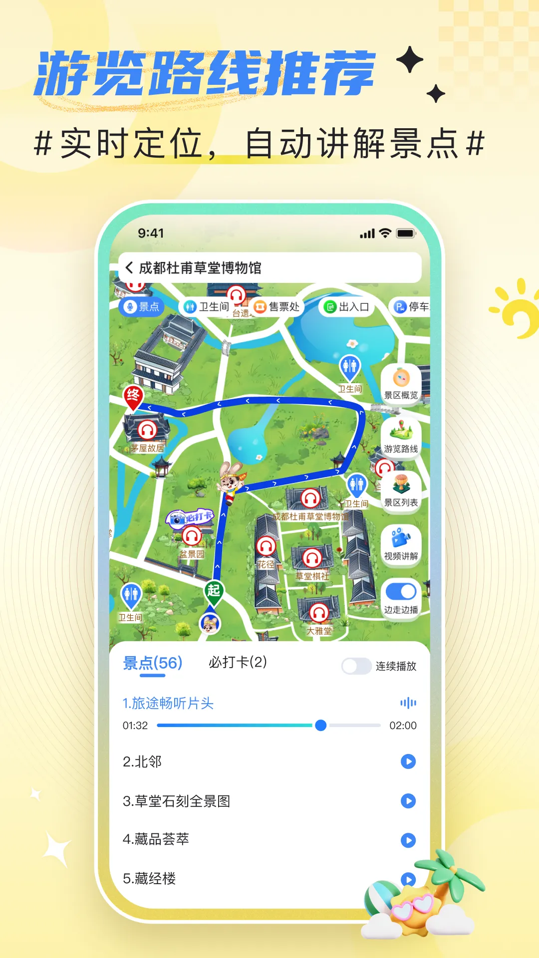 2、文化深度探索:专业语音讲解为渴望深入了解景点历史文化故事的游客,提供丰富背景知识,助您深度游。