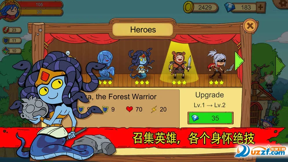 3、角色养成体验:可召唤大量身怀绝技的英雄,每个英雄被动技能有差异,要依不同地图、BOSS和关卡选择。还能孵化宠物,根据其属性和技能挑选合拍的一起冒险。