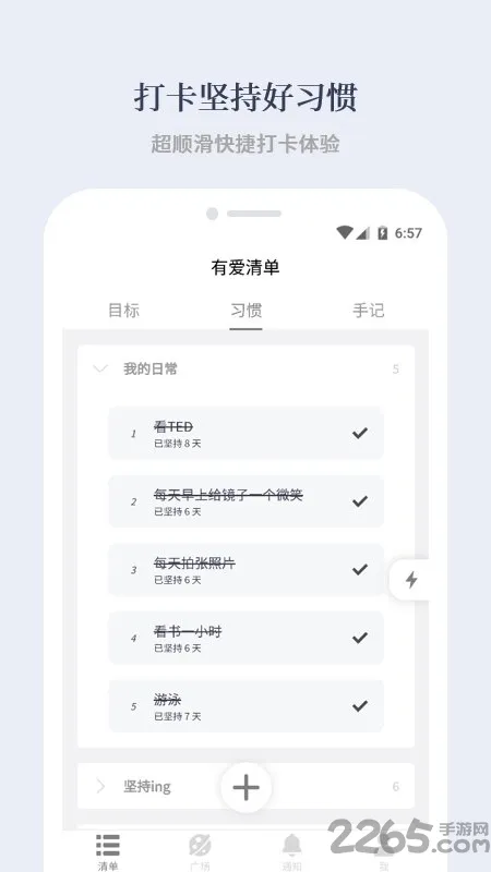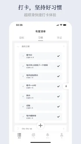 4、助力养成良好习惯,可将习惯记录其中监督自己完成,每日按时打卡收获成就感。