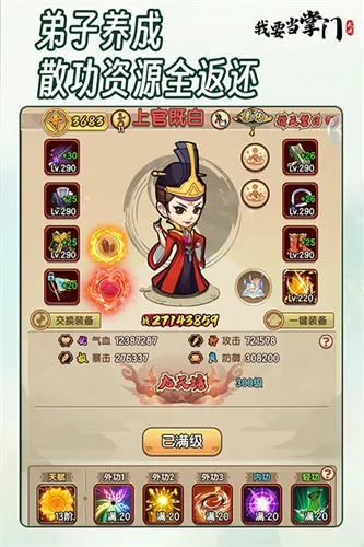 1、《我要当掌门2025官方最新版本》玩法丰富,可招募弟子培养专属侠客团队,建设并升级门派设施,还能参与江湖论剑和门派争夺战等,体验独特的国风经营乐趣。