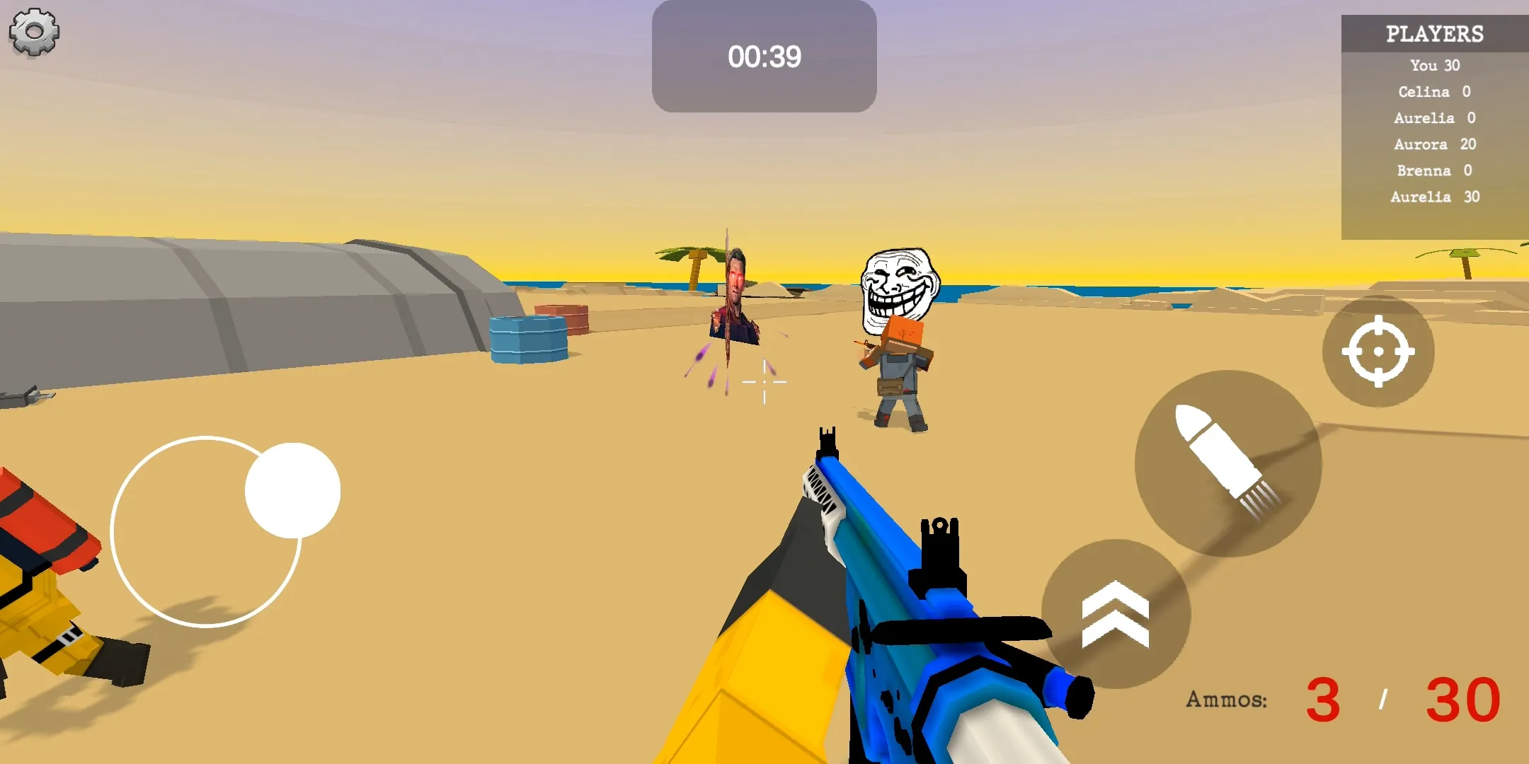 2、游戏操作直观,在混乱战场中可轻松导航、躲避火力并精准射击。武器多样,能满足不同游戏风格。