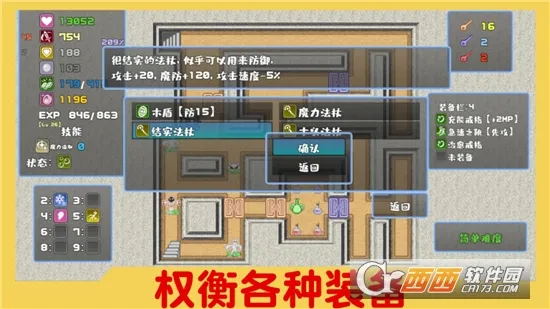 4、有6个不同角色,可学习多样技能,53层精心设计魔塔,构造和剧情随角色变化,玩法丰富。