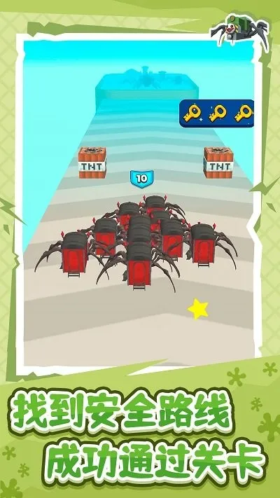 1、创新玩法融合,将自走棋合成机制与横版跑酷结合,前进中自动收集同类蜘蛛怪物合成高阶形态,角色体型与技能随之强化。