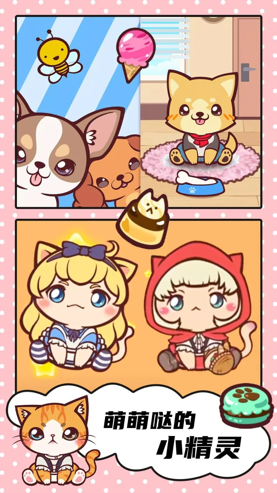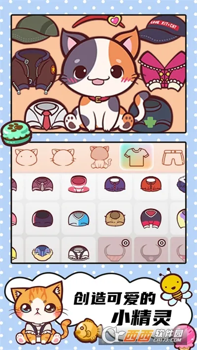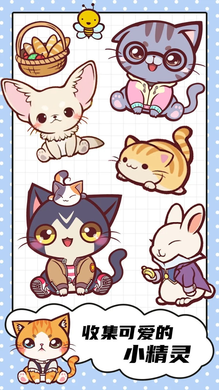 1、可爱猫咪元素,能根据喜好为猫咪换上可爱衣服,搭配精致妆容。