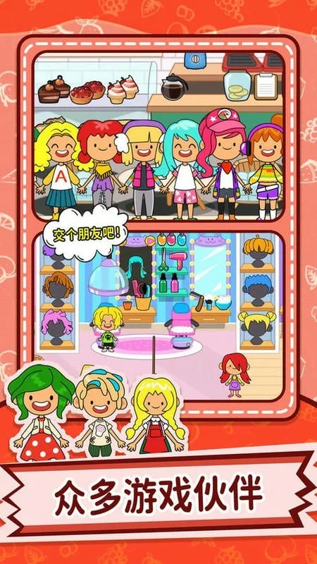 2、此版本游戏画面设计梦幻可爱,身处童真的娃娃世界,可自由结交新朋友,展开全新人生,感受模拟养成乐趣。